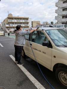 もみじでは仕事納めの一環として毎年、感謝の気持ちを込めて訪問車の洗車をします。