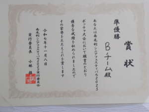 私はお留守番でしたが、賞状をいただけたと聞き、驚きました。