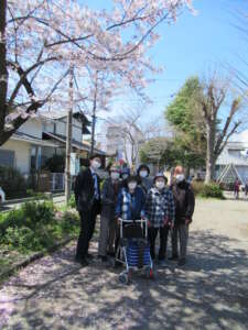 満開の桜の下で、ゆったりとした時間を楽しみました。風に舞う花びらがとても美しく、皆さまの表情も自然とほころびます。