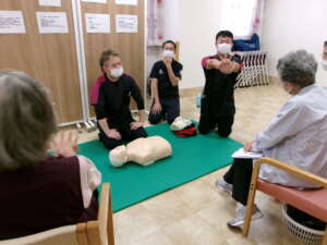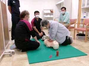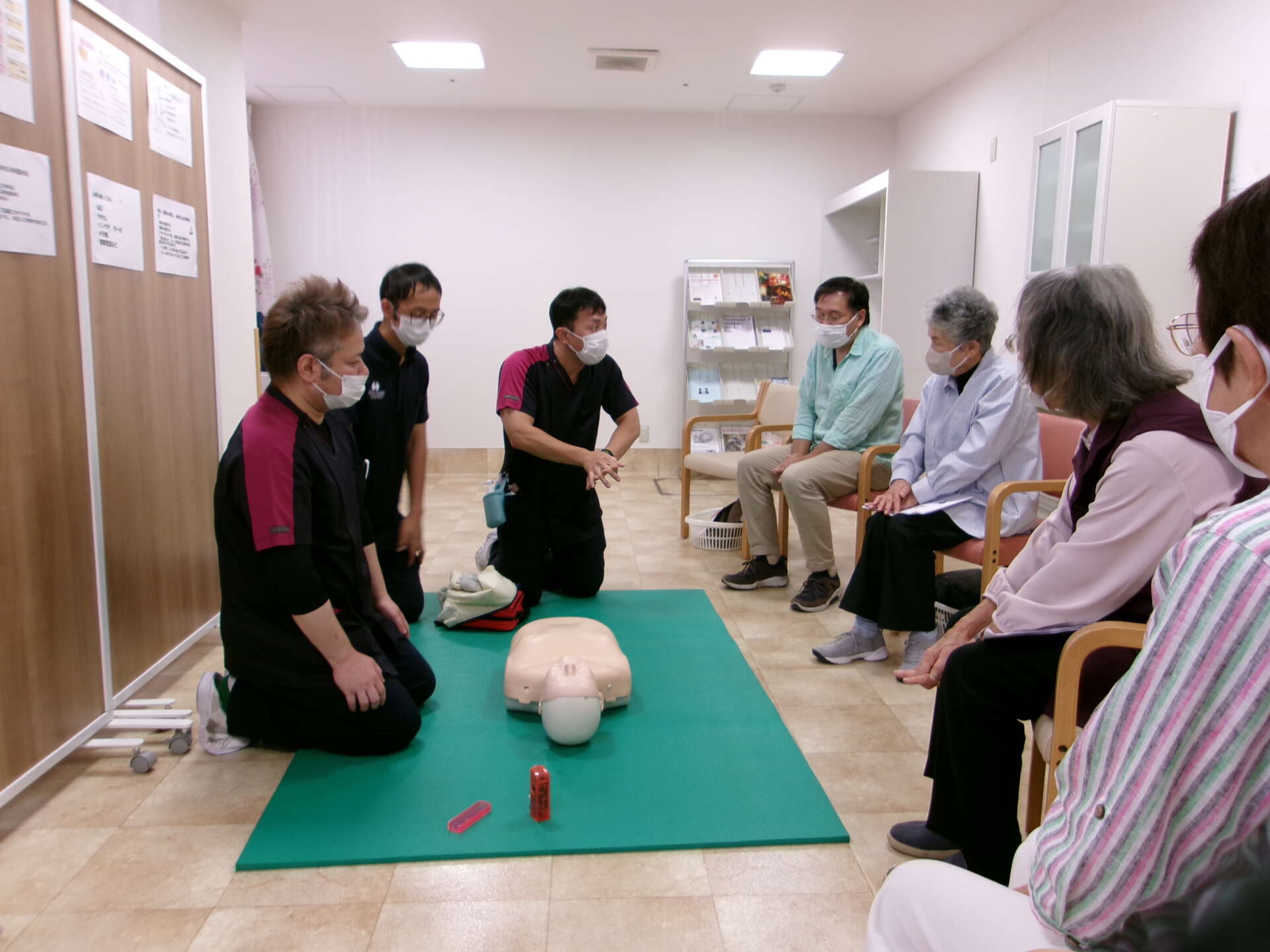 看護師が講師となり、AEDの使い方や設置場所についてレクチャーしました。
