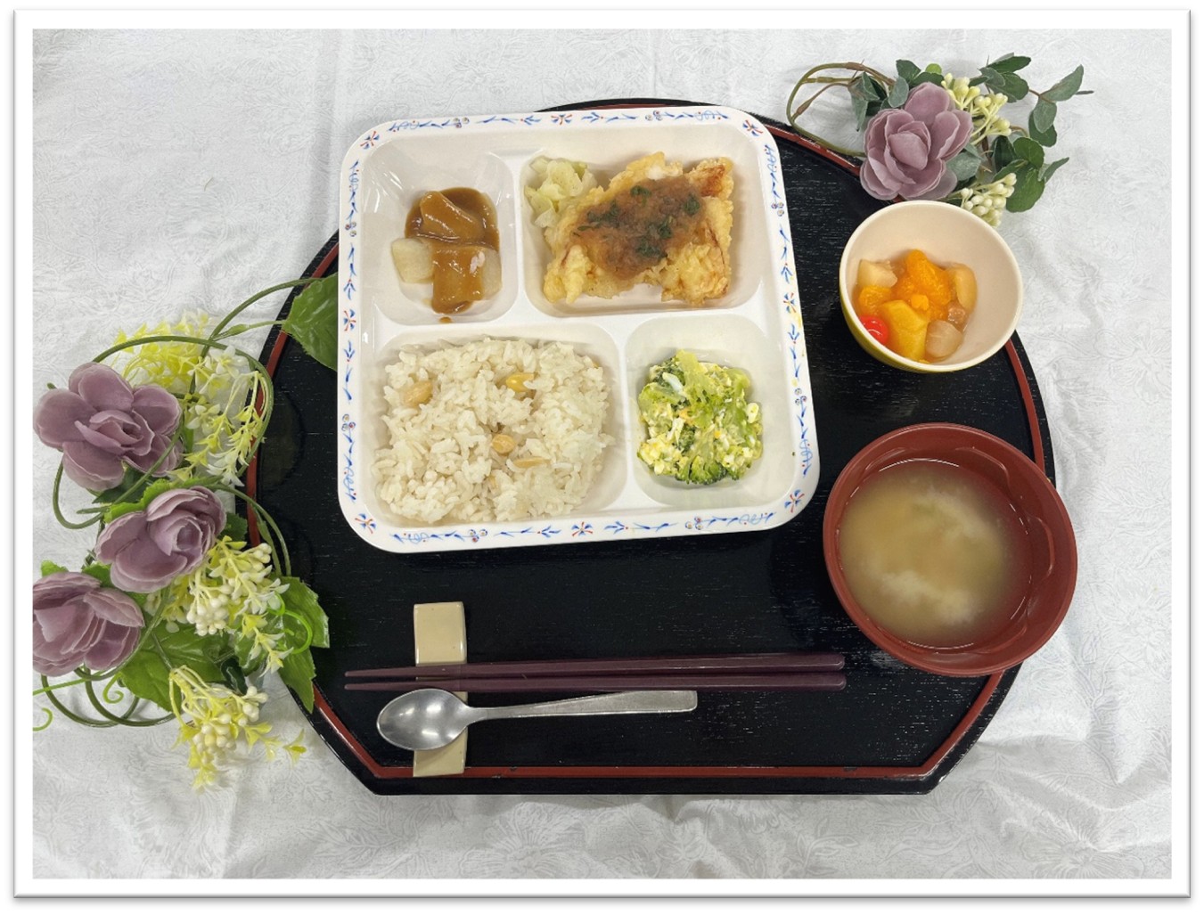季節の行事に関連した食材や料理、その時期の食材などを取り入れた「行事食」を、毎月1回は提供しています。