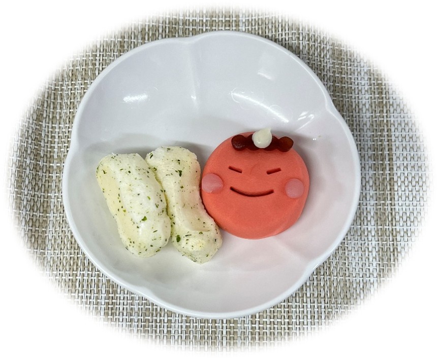おやつは、可愛らしくもある「鬼のおまんじゅう」と、おかきの盛り合わせでした。