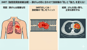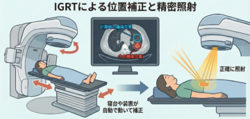 現代の放射線治療は、ターゲットを正確に射抜くための高度なテクノロジーに支えられています。IGRT(画像誘導放射線治療)は、「照射直前に位置をミリ単位で修正する」技術です。呼吸や内臓の動きによる日々の位置のずれを修正できるため、狙った場所に確実に照射することができます。