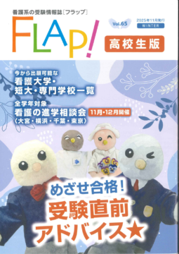 2025年11月発行看護の受験情報誌[フラップ!-高校生版-]にて、様々な職場で専門性を活かした看護師の仕事を紹介する「看護の仕事レポート」の中で、当院緩和ケア看護師 松山看護師(がん総合外来所属)のインタビューが掲載されました。