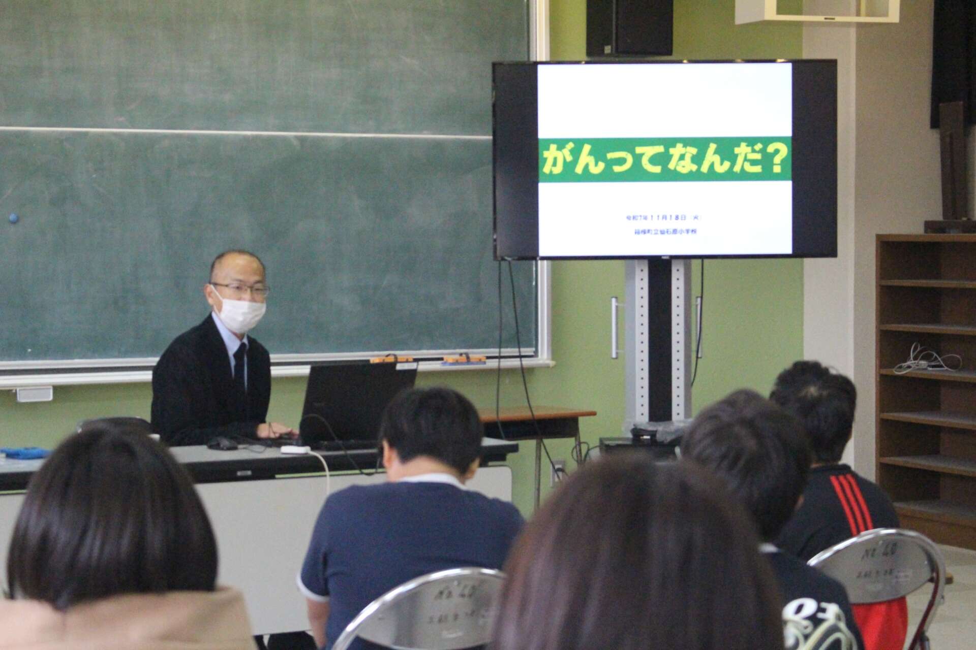 緩和ケア内科の飯田哲士先生が講師となって、「がんとはどんな病気か」、「予防や検診の大切さ」を伝えしました。授業を受けた子どもたちからは、自分の健康を意識した言葉が多く聞かれました。先生からは「授業がしっかり子どもたちの行動につながっている様子が見られ、大変うれしく思いました。」とお話しいただきました。