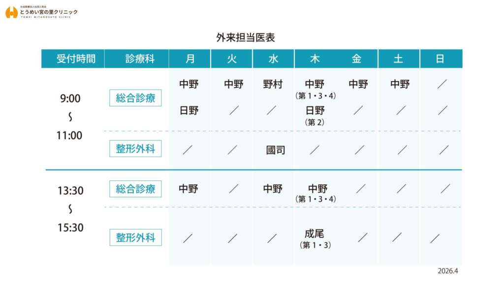 2026年4月より診療日が変更となります。